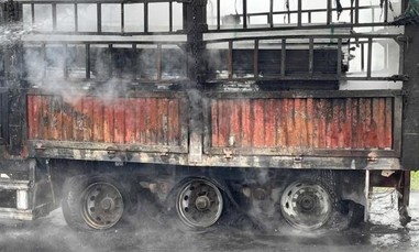 (CAO) Khoảng 9 giờ ngày 17/4, xe đầu kéo biển số Thanh Hóa chở sắt hộp, chạy trên đường ven biển Nghi Sơn - Cửa Lò (tỉnh Nghệ An) theo hướng Bắc - Nam, khi tới xã Hải Châu (trước thuộc huyện Diễn Châu), thì rơ-moóc phát lửa. Tài xế vội tấp xe vào lề đường, sau đó cùng phụ xe mở cửa thoát ra ngoài. Lúc này, lửa đã bốc lên ngùn ngụt, bao trùm khắp phương tiện, cột khói đen dày đặc cao hàng chục mét. Nhận tin báo, Phòng Cảnh sát chữa cháy và cứu hộ cứu nạn Công an tỉnh Nghệ An điều một xe cứu hỏa cùng hàng chục cán bộ, chiến sĩ tới hiện trường dập lửa. Ít phút sau, hỏa hoạn được khống chế, song toàn bộ giàn lốp phía sau bị thiêu rụi, phần đuôi xe hư hỏng nặng.